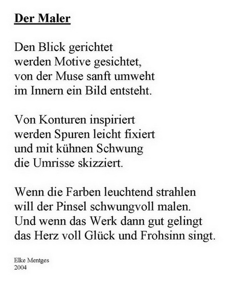 Klaus-Ewald Mentges hat schon mehrere Ausstellungen hinter sich, vor allem in kleinen Galerien und Praxen, davon mehrfach in Griechenland. Damit hat er sich eine kleine Liebhaber-Gemeinde geschaffen. Mit über 50 Bildern ist dies schon eine der ganz großen Ausstellungen. Und ich möchte mich bei Klaus-Ewald ganz herzlich bedanken, dass er uns seine Bilder zeigt, denn mit dem Innersten nach draußen zu gehen und sich zu zeigen, der Bewunderung und der Kritik ausgesetzt zu sein, das kostet immer Überwindung.